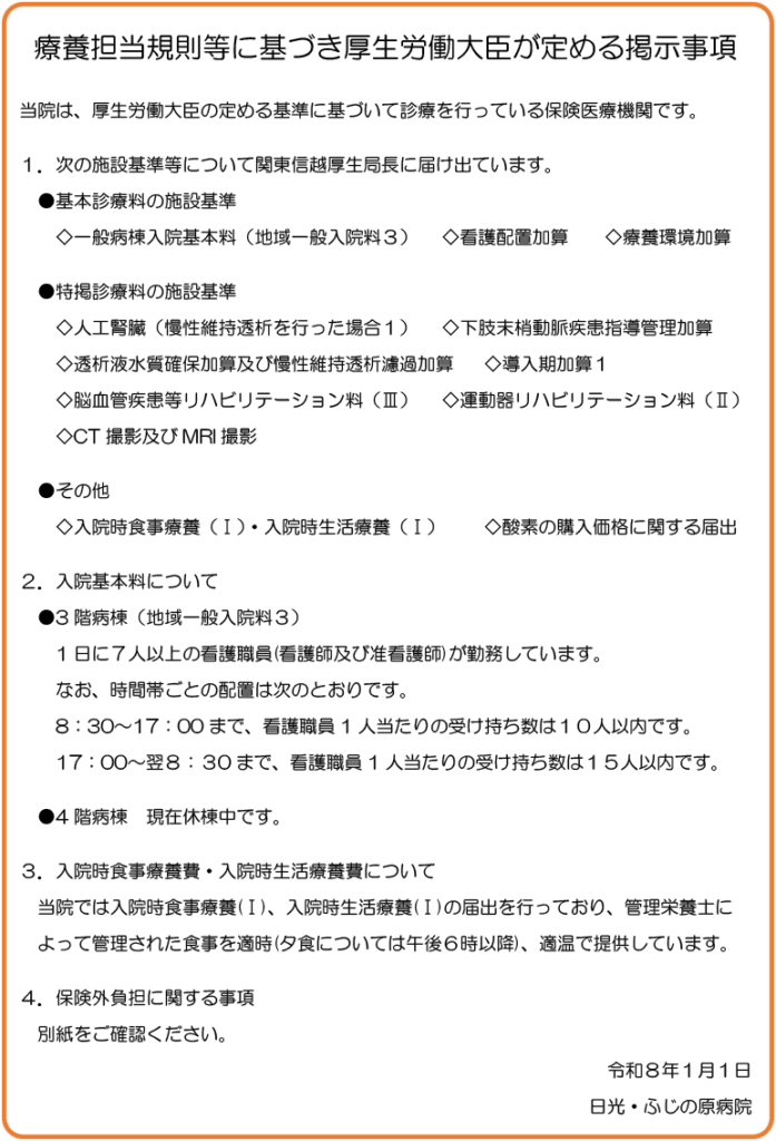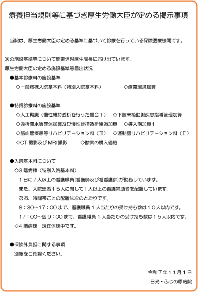療養担当規則等に基づき厚生労働大臣が定める掲示事項